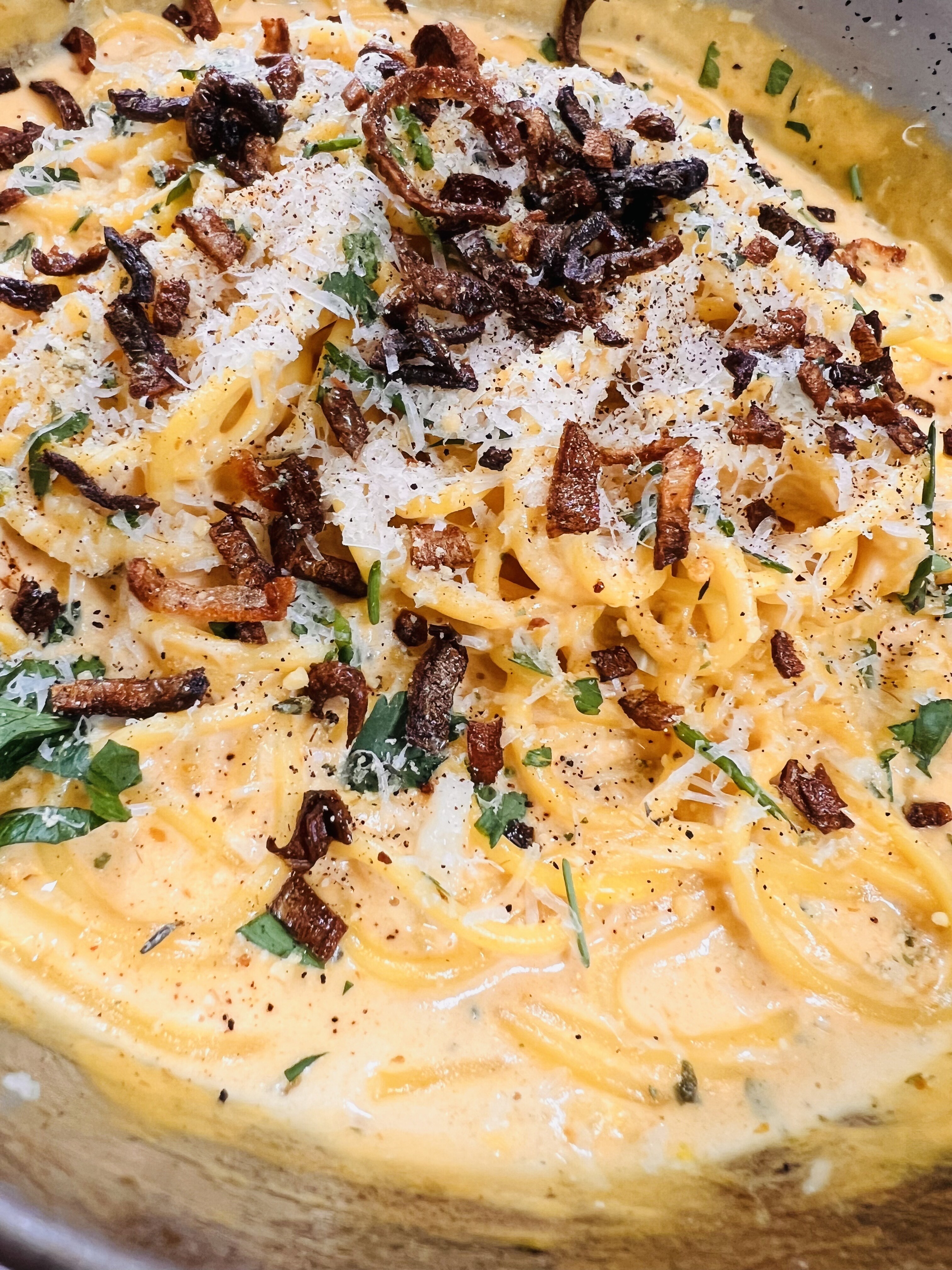 A glossy, flavor-packed dish that hits every note — salty, sweet, savory, and just a little earthy. Miso and butter create a silky base that clings to soy-coated noodles, while honey adds balance and Hippy Pilgrim seasonings layer in depth. It’s simple enough for a weeknight but impressive enough to steal the cover of Bon Appétit.