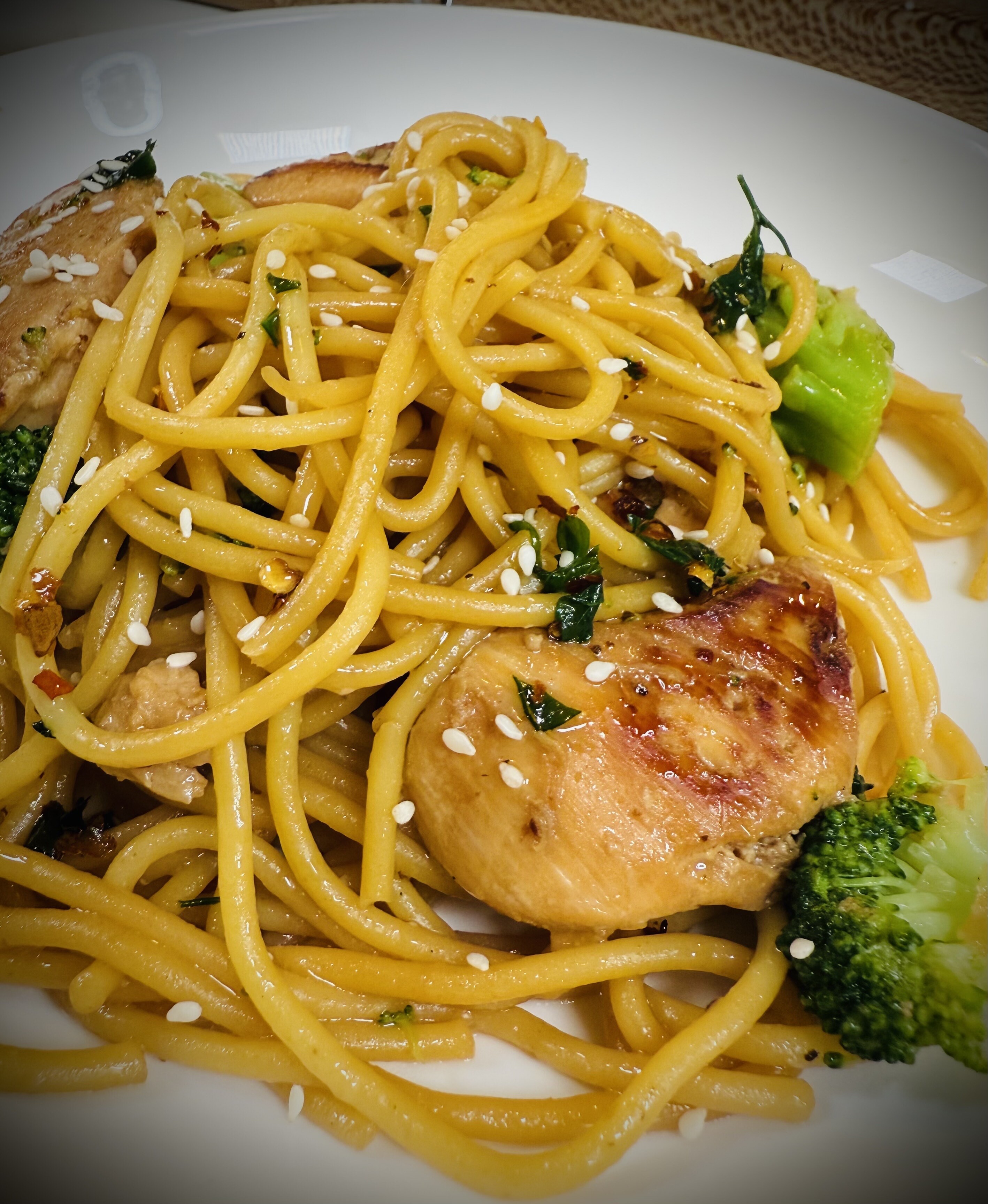 - Serve: Twirl noodles high on the plate, top with chicken, and finish with scallions, sesame seeds, or a touch of chili oil for shine.